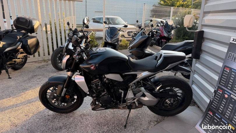 Description Honda CB 1000R 2021 1000 cm3 Roadster, noir première mise en circulation le 01/07/2021. Vend HONDA CB 1000 R 01 07 2021 avec 23 107 km Autres observations : -Poignées chauffantes ,-Saute Vent, -Sabot moteur, -Silencieux Termignoni Titanium ,-Capot de selle ,-Tampons de protection ,-Leviers personnalisés ,-Grille de radiateur ,-Support de plaque court, -Shifter UP/DOWN